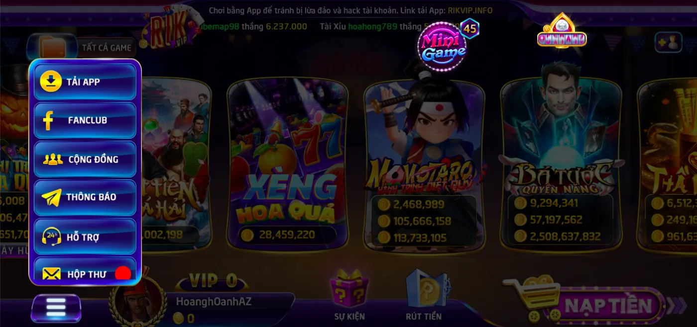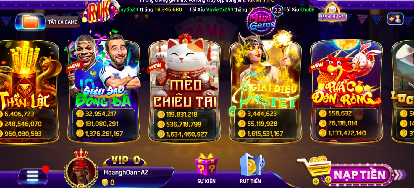 Danh sách các sản phẩm thu hút ở Rikvip