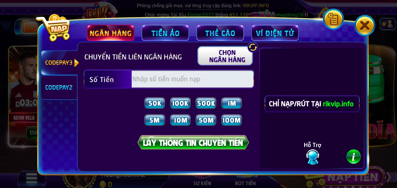 Nạp rút tại Rikvip nhanh chóng